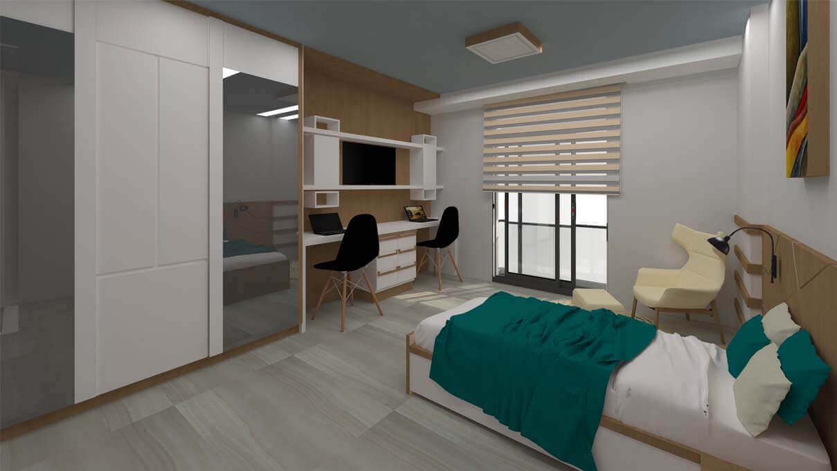 Suit odalar 20m² alana ve balkona sahiptirler. Tek kişi konaklama imkanı vardır.